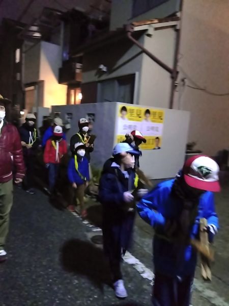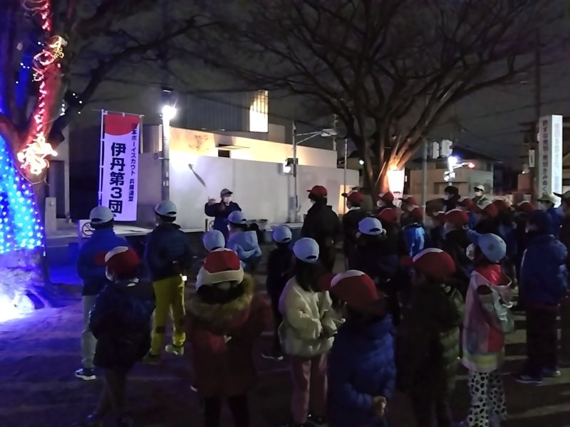 今年最後のビーバー隊の活動は、団行事の夜回りでした。夜からの活動はなんだか新鮮でワクワクしますね。各隊を4組に分けて新伊丹駅を中心に夜回り開始します!火の用心〜と、大きな声を出せたかな。みんなの声を聞いて地域の方が火の取扱いに一人でも気をつけてもらえたら嬉しいね。寒い中お疲れさまでした。