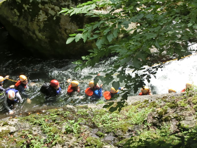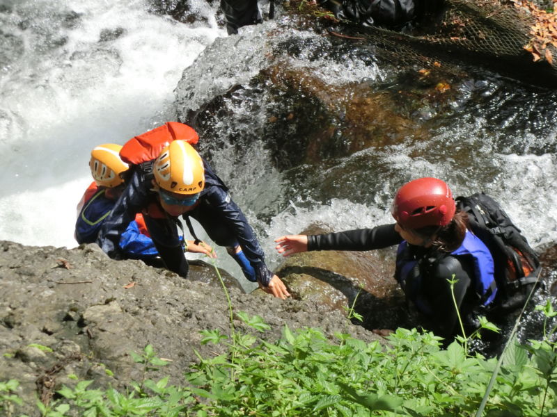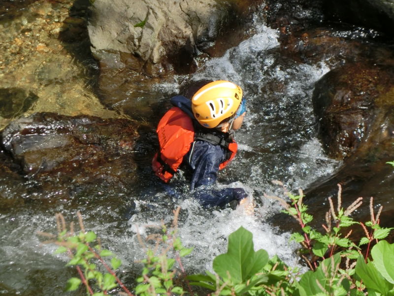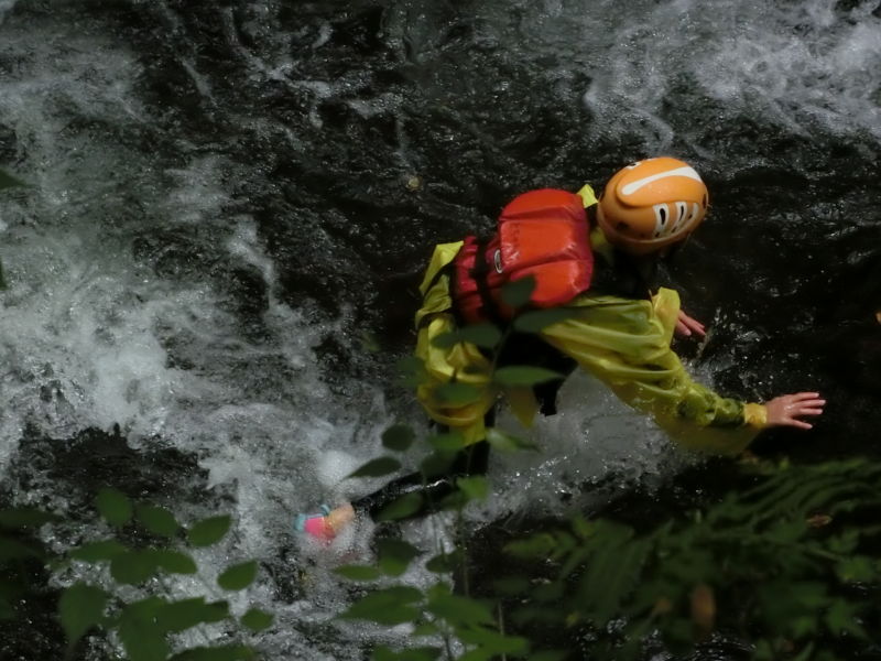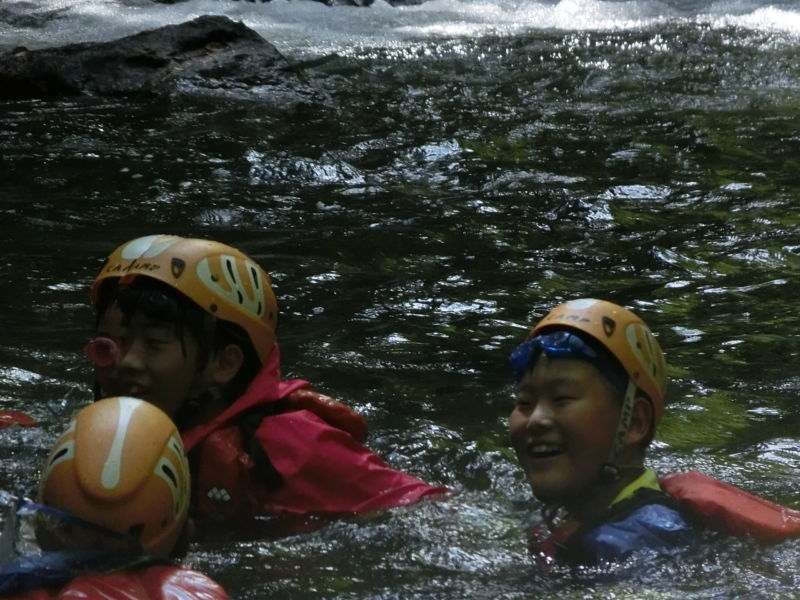 激しい水流に押し流されながらも力一杯ゴール地点を目指しました。