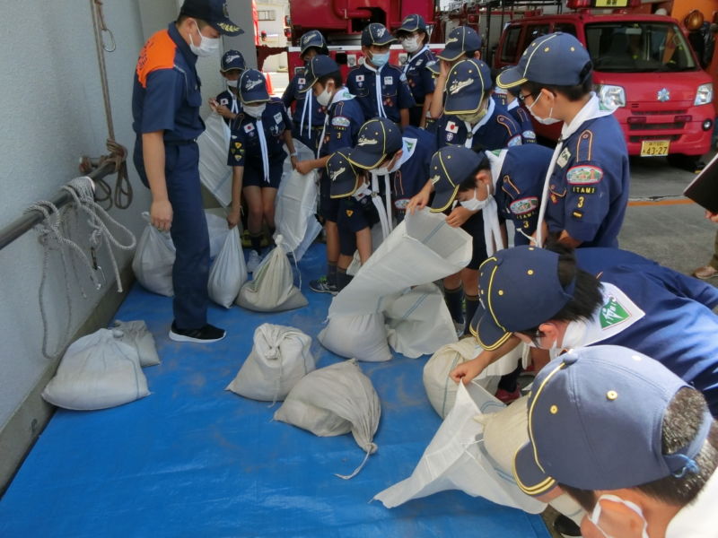 合わせて土嚢の作り方を学び、最後は特殊車両の見学まで・・・