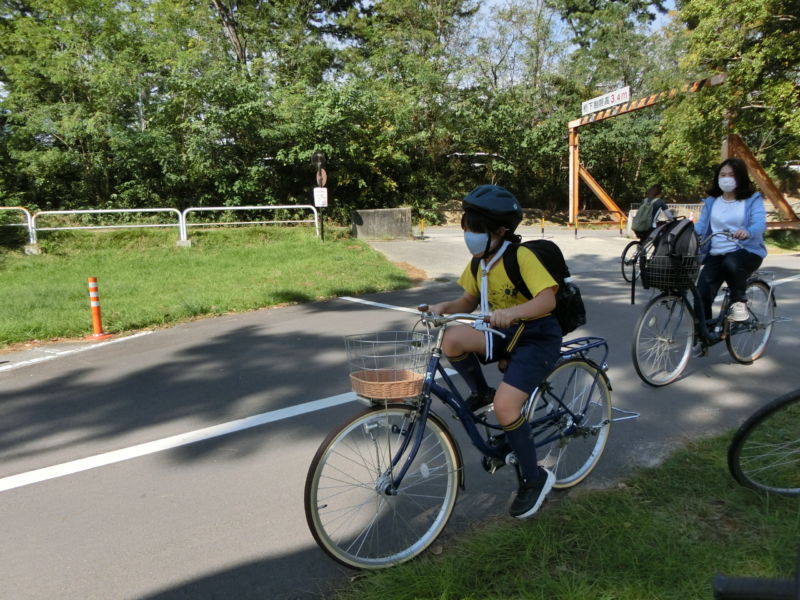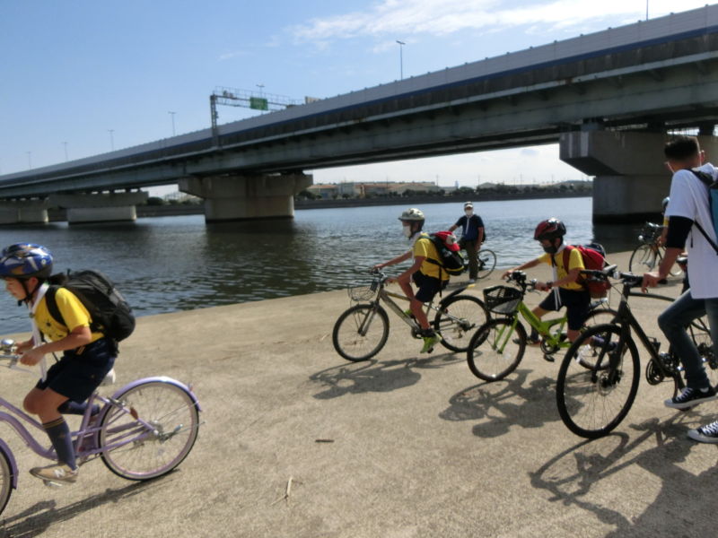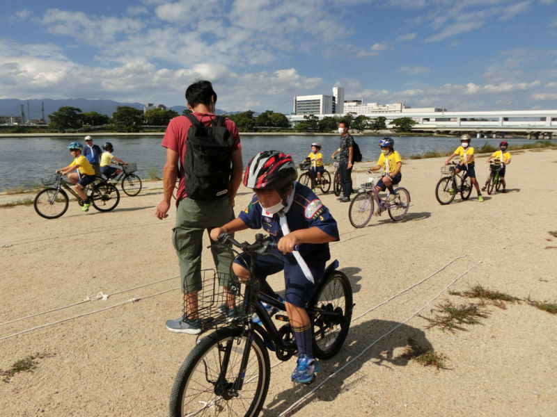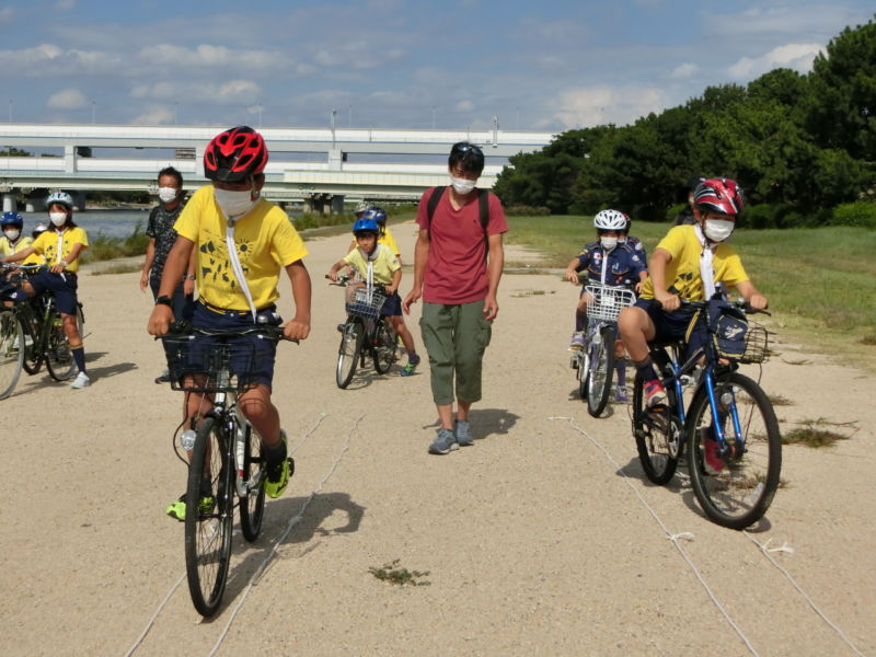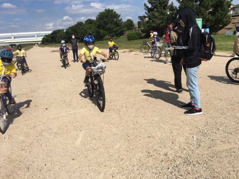 河川敷では自転車スキルを使ったゲームで楽しみました。