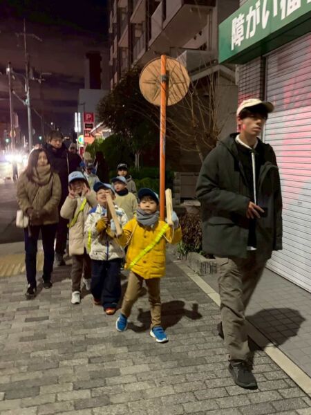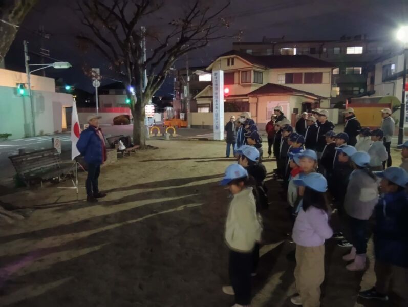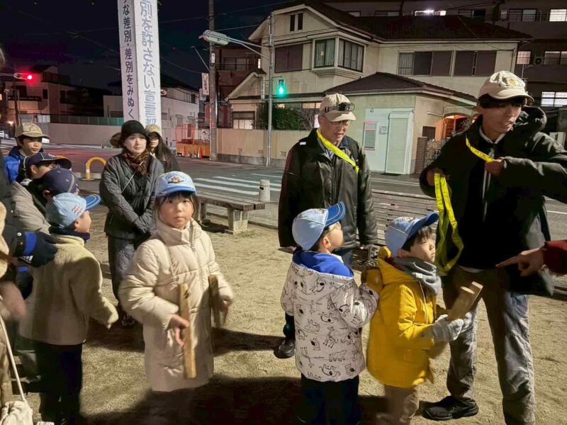 令和7年12月27日(土) ボーイスカウト伊丹第3団は、ローズレイ公園を拠点に、18:30~20:00頃まで伊丹市内の鈴原小、南小学区を中心に、周辺を年末警戒の巡回をしました。「火の用心」「たばこの不始末火事のもと」など、大きなかけ声で、寒い中、よまわりを実施し、安全な年末年始を迎えられるよう注意を促しました。