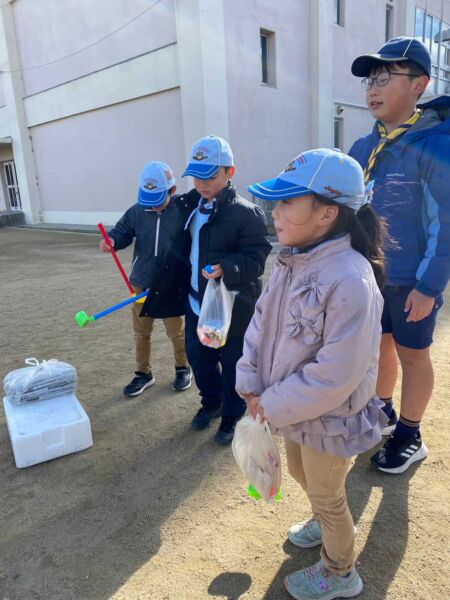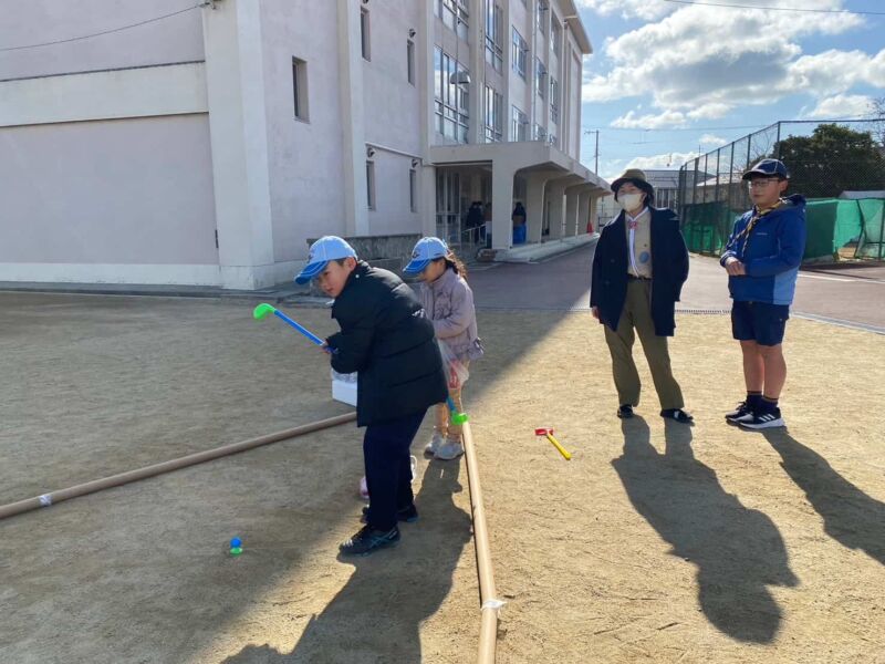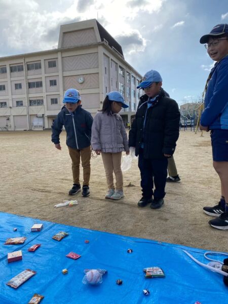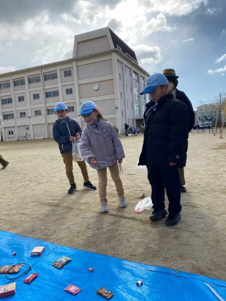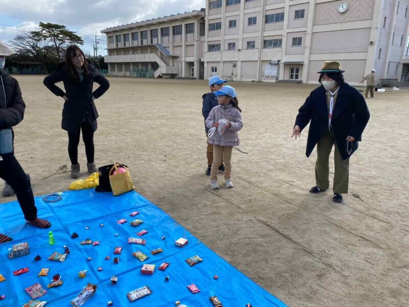その後、鈴原小学校で「お楽しみゲーム」を行い、たくさんのお年玉をいただきました。
