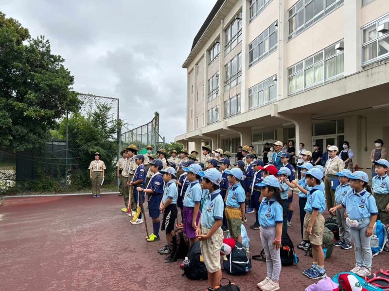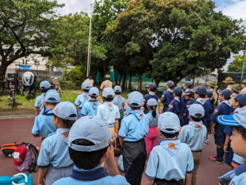 29日(土)のセレモニー、ビーバー隊の有馬富士公園での活動の様子、神戸三田アウトドアビレッジ到着後、夕ごはんの様子など。