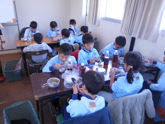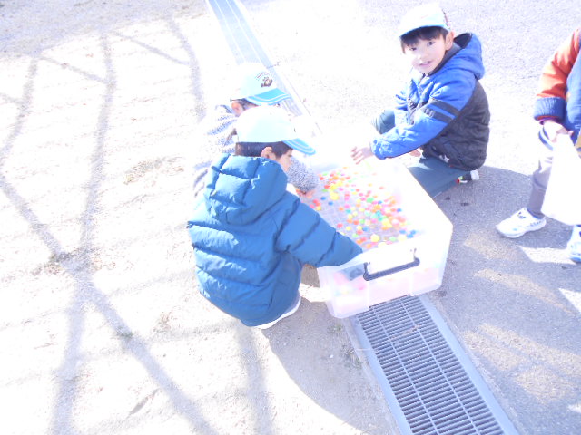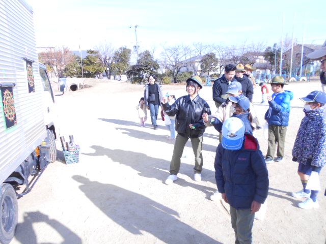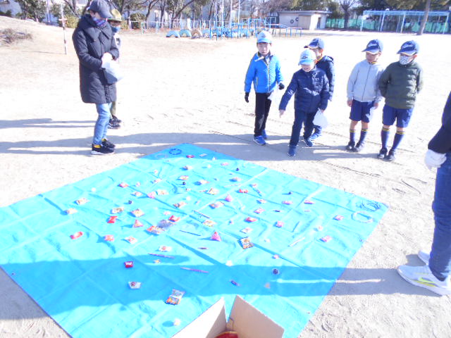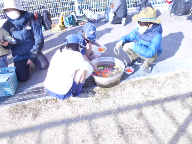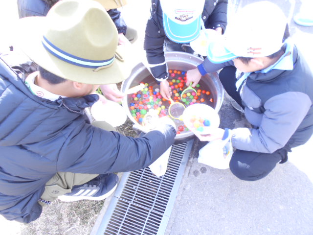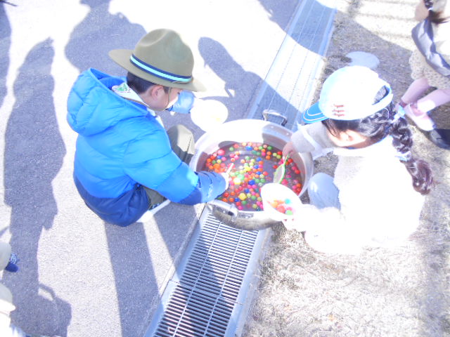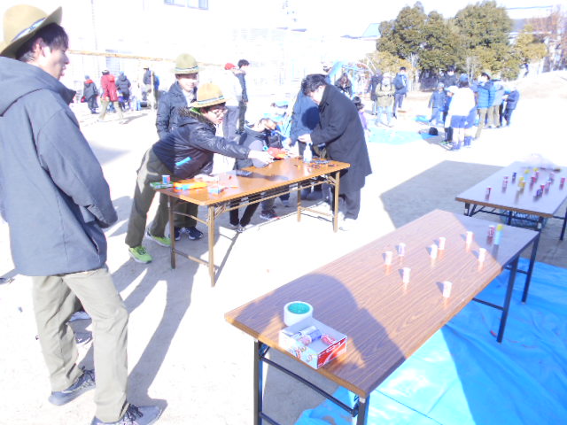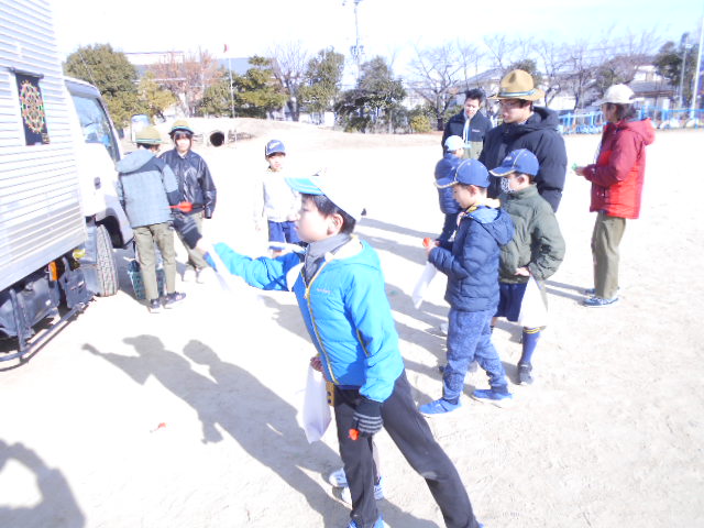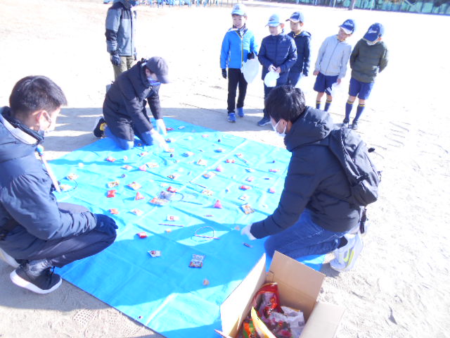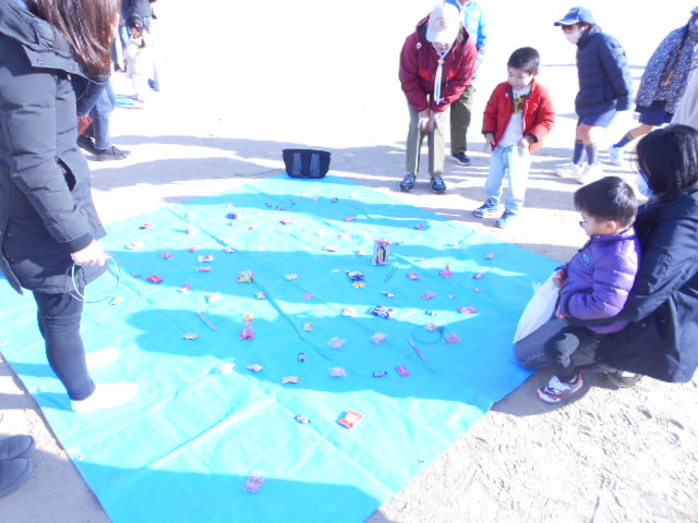 その後、鈴原小学校で「お楽しみゲーム」を行い、たくさんのけいひん(おとしだま)をいただきました。