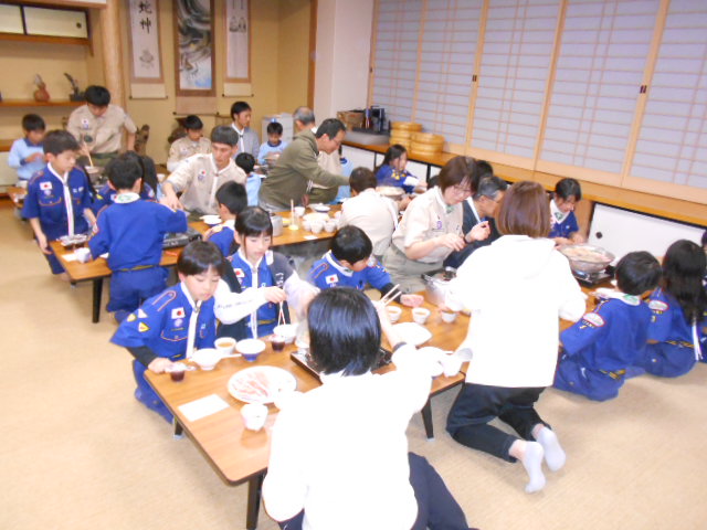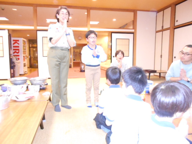 1日(土)の夜は、午後6時から「夕食」、「B・P祭」(ベーデン・パウエル祭)、夜間ミニゲームを行いました。