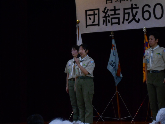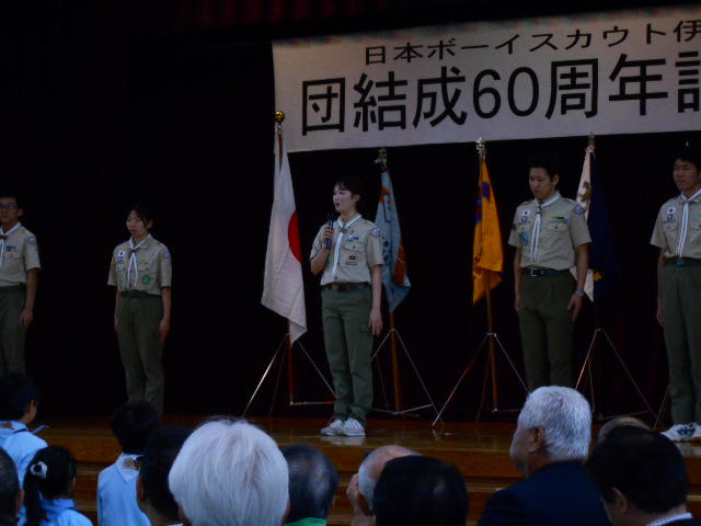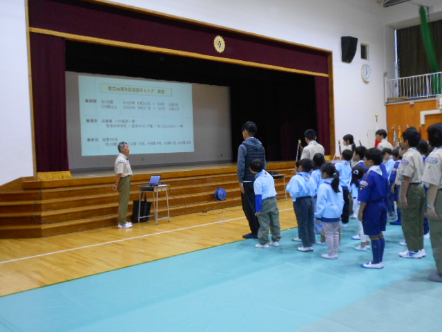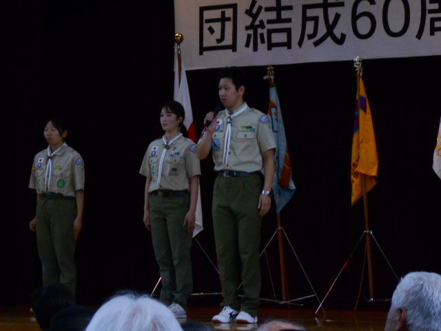 記念行事では、60周年記念団夏キャンプにて5つの特別班にて行った氷ノ山登山などの活動報告を行いました。
